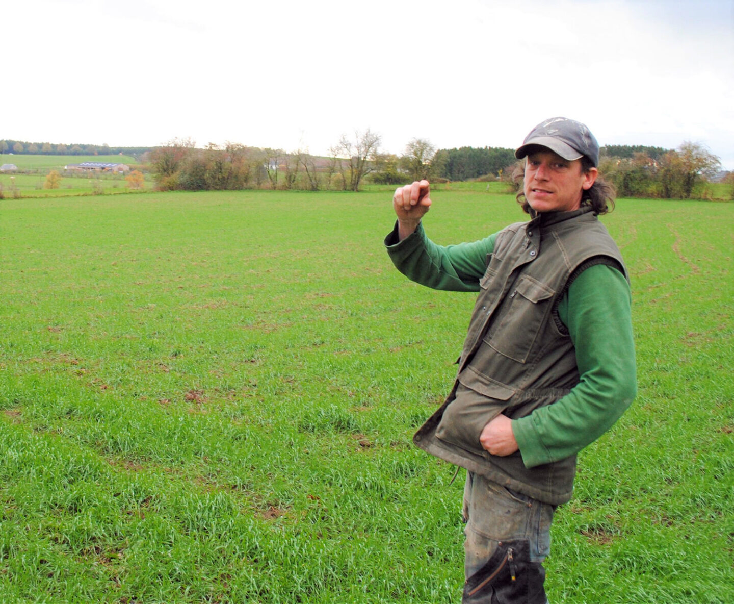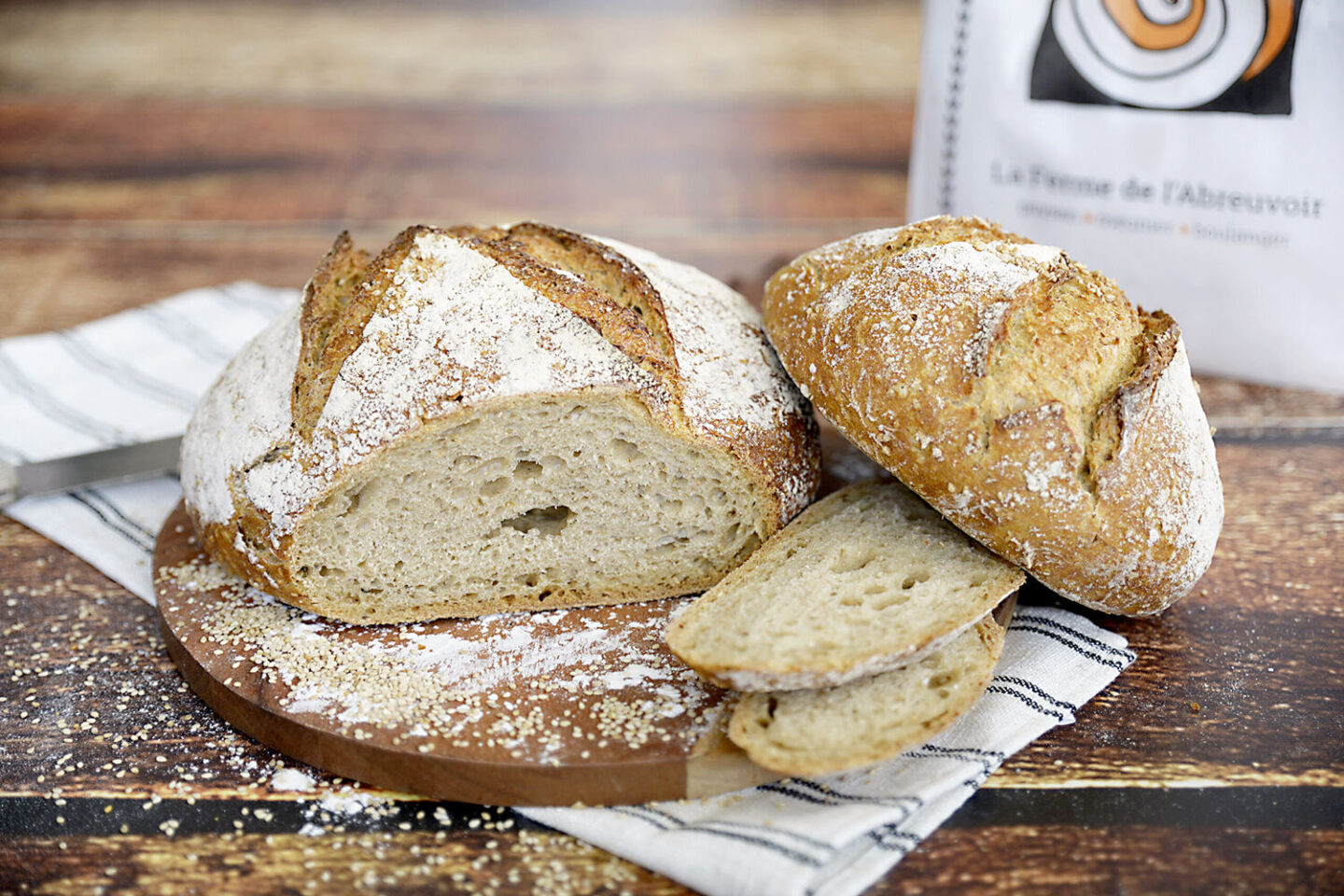 Direction la ferme de l’Abreuvoir à Tournay (Neufchâteau), dans la province du Luxembourg. Depuis 2015, Simon partage son temps entre ses 3 casquettes paysan-meunier-boulanger, ce qui nécessite une sacrée dose d’organisation et beaucoup d’heures de travail… « Je passe vraiment d’une tâche à l’autre non-stop » raconte-t-il. « Je vais travailler le sol, puis je passe au moulin vérifier que tout se passe bien, puis il est l’heure de préparer mon levain, d’aller nourrir mes vaches… Deux fois par semaine, je cuis le pain la nuit et j’enchaîne avec ma tournée de livraison dans la région. Mon objectif depuis le début était vraiment de réaliser toute la filière du grain au pain. Mais au quotidien, ce n’est pas linéaire, tout est mélangé… ».