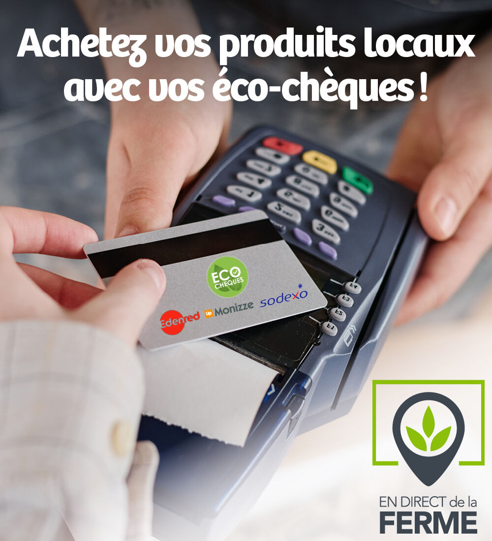 Pour pouvoir vendre ses produits avec les éco-chèques le point de vente doit être labellisé « En Direct de la Ferme ». Le lancement du label étant très récent (avril 2023), la liste des points de vente avec payement éco-chèque va s’étendre dans les mois à venir. N’hésitez pas à venir reconsulter cette page prochainement et/ou à vous abonner à la newsletter « jecuisinelocal » pour être informé des nouveaux points de vente labellisés.