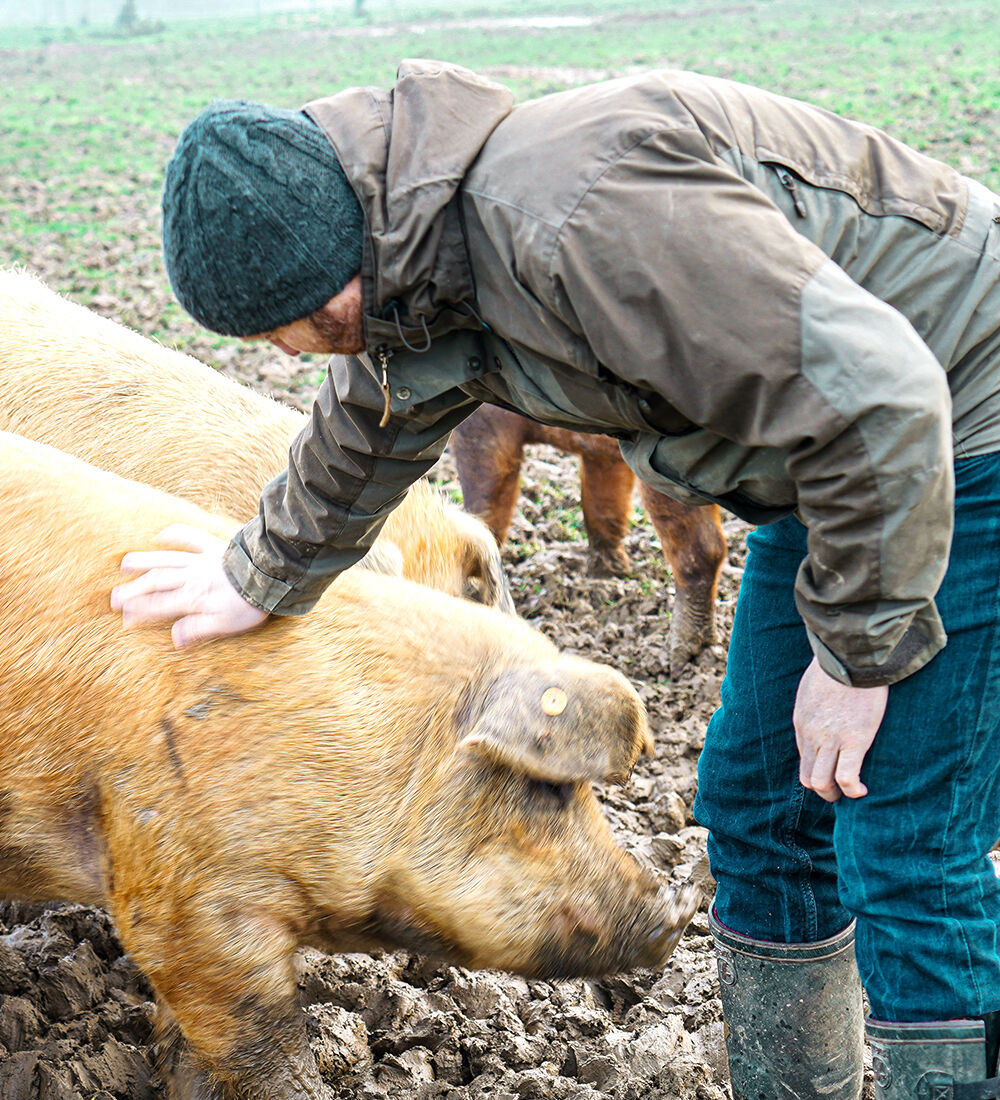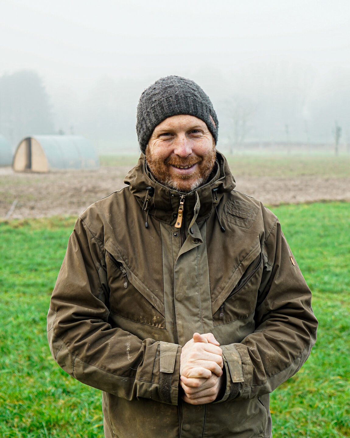Bottes chaussées, doudoune enfilée, bonnet vissé sur la tête… Nous voilà parés pour aller à la rencontre des trente cochons élevés par Christophe Guillemot, que l’on retrouve derrière cette petite entreprise familiale.
