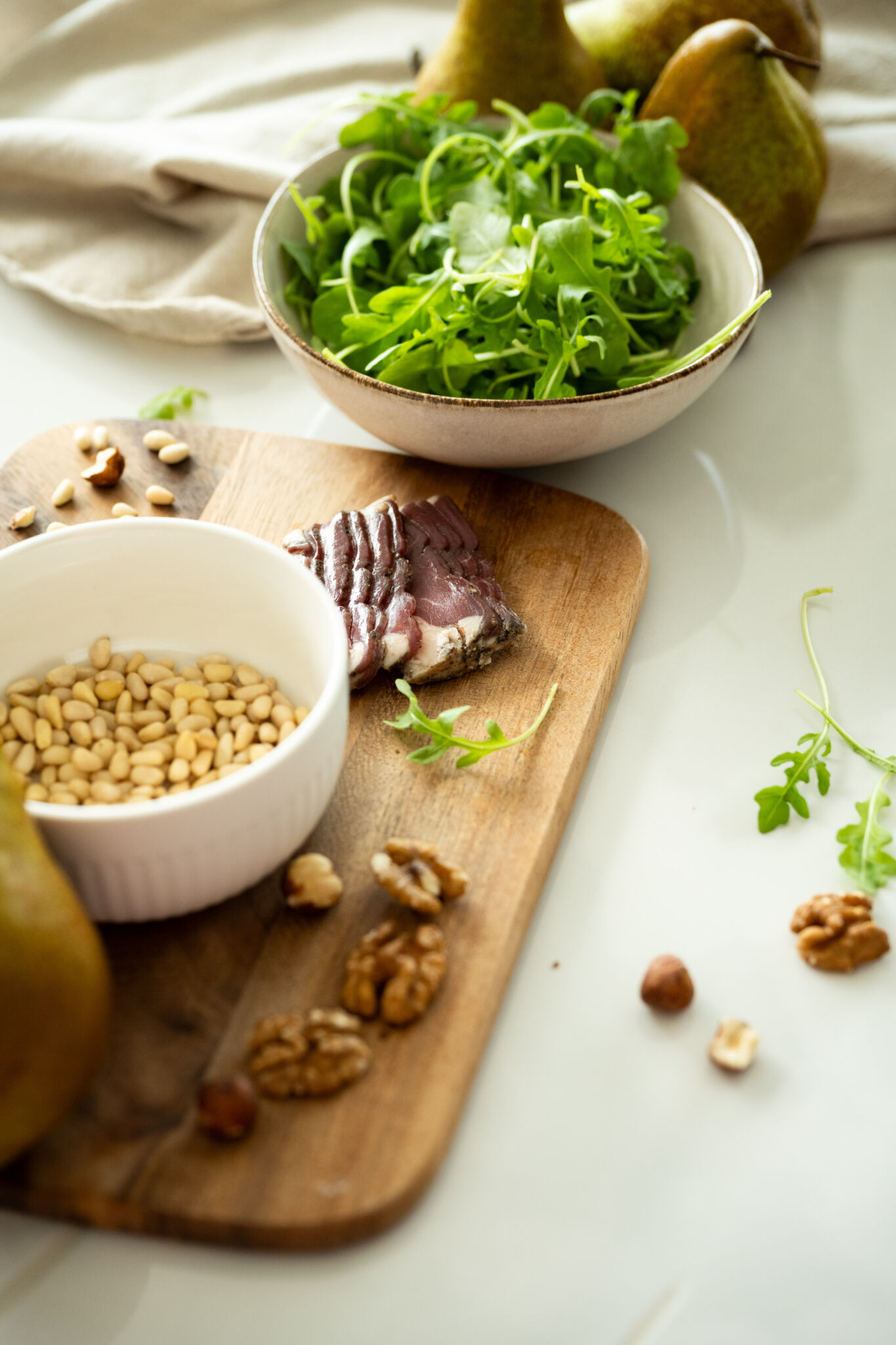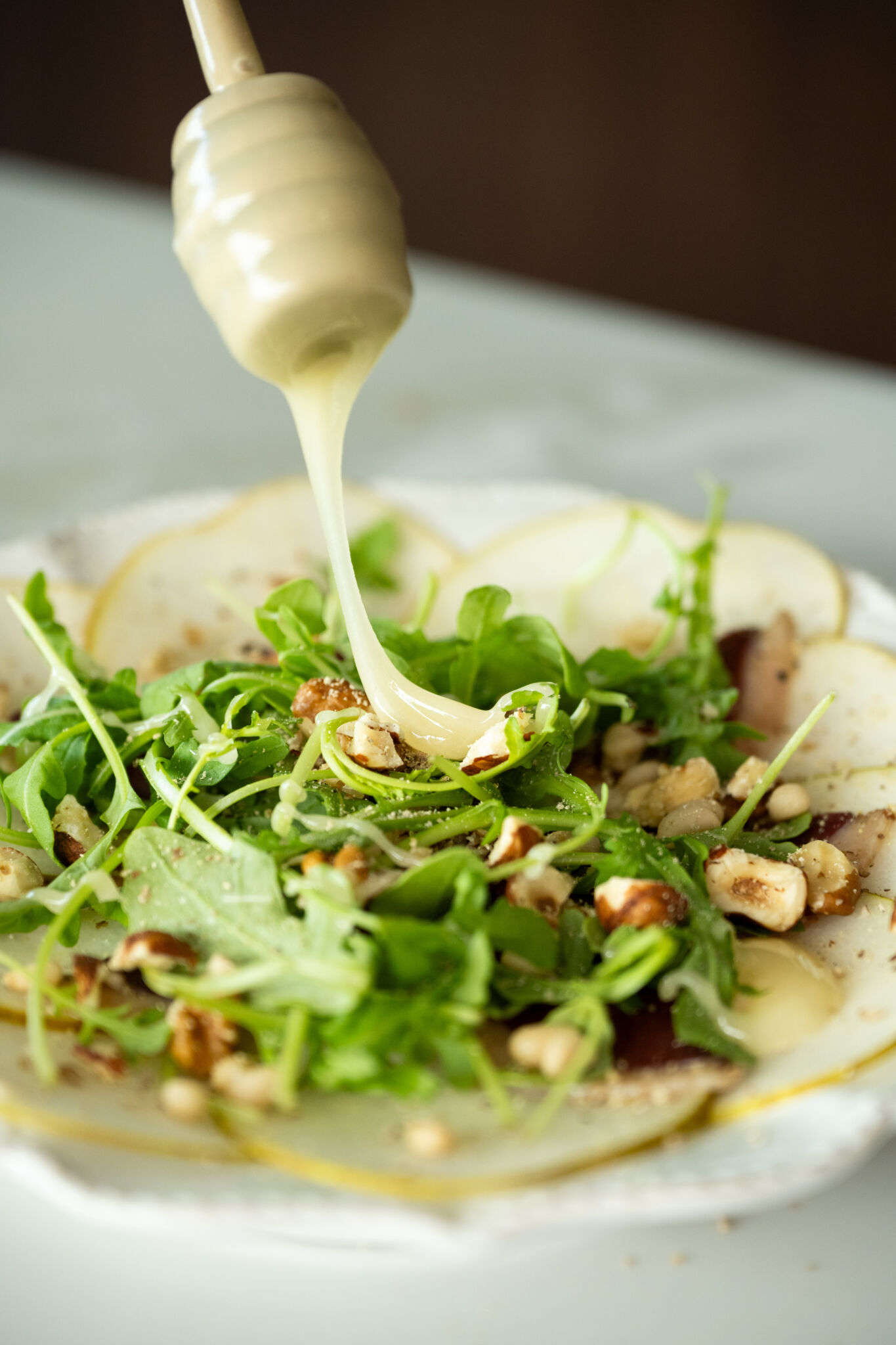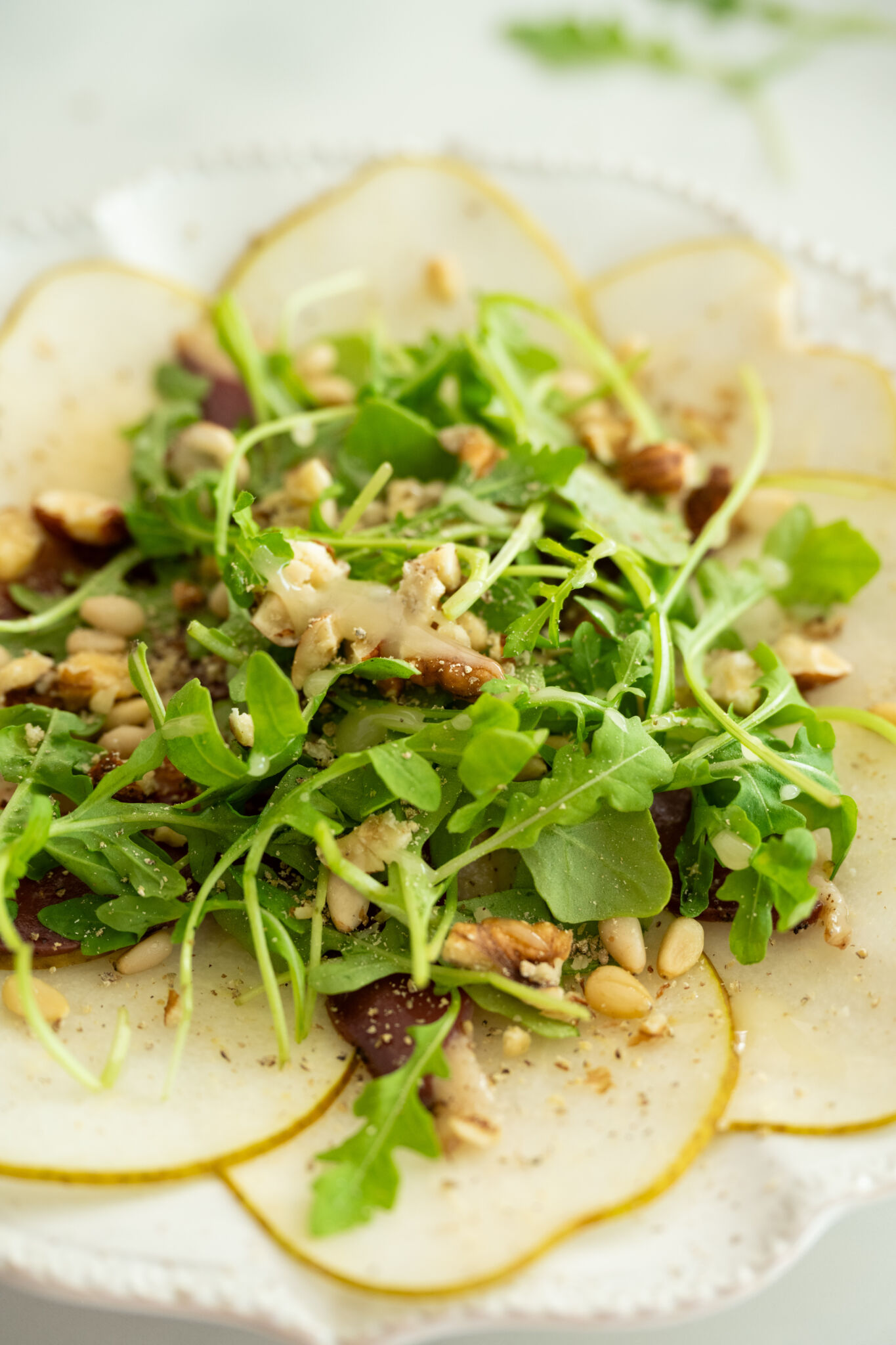 Nous, nous adorons les recettes qui allient simplicité et raffinement. Ce carpaccio de poires, magret de canard, roquette, noix et miel est un incontournable de l'automne. C'est l'occasion idéale de visiter votre producteur de fruits, votre apiculteur ou votre ferme locale pour vous procurer des ingrédients de première qualité. Il suffit de quelques minutes pour assembler ces saveurs complémentaires : le salé du canard, le sucré du fruit et le piquant des feuilles. Une entrée simple à préparer, parfaite pour les repas d’automne où l’on aime se régaler sans passer des heures en cuisine.