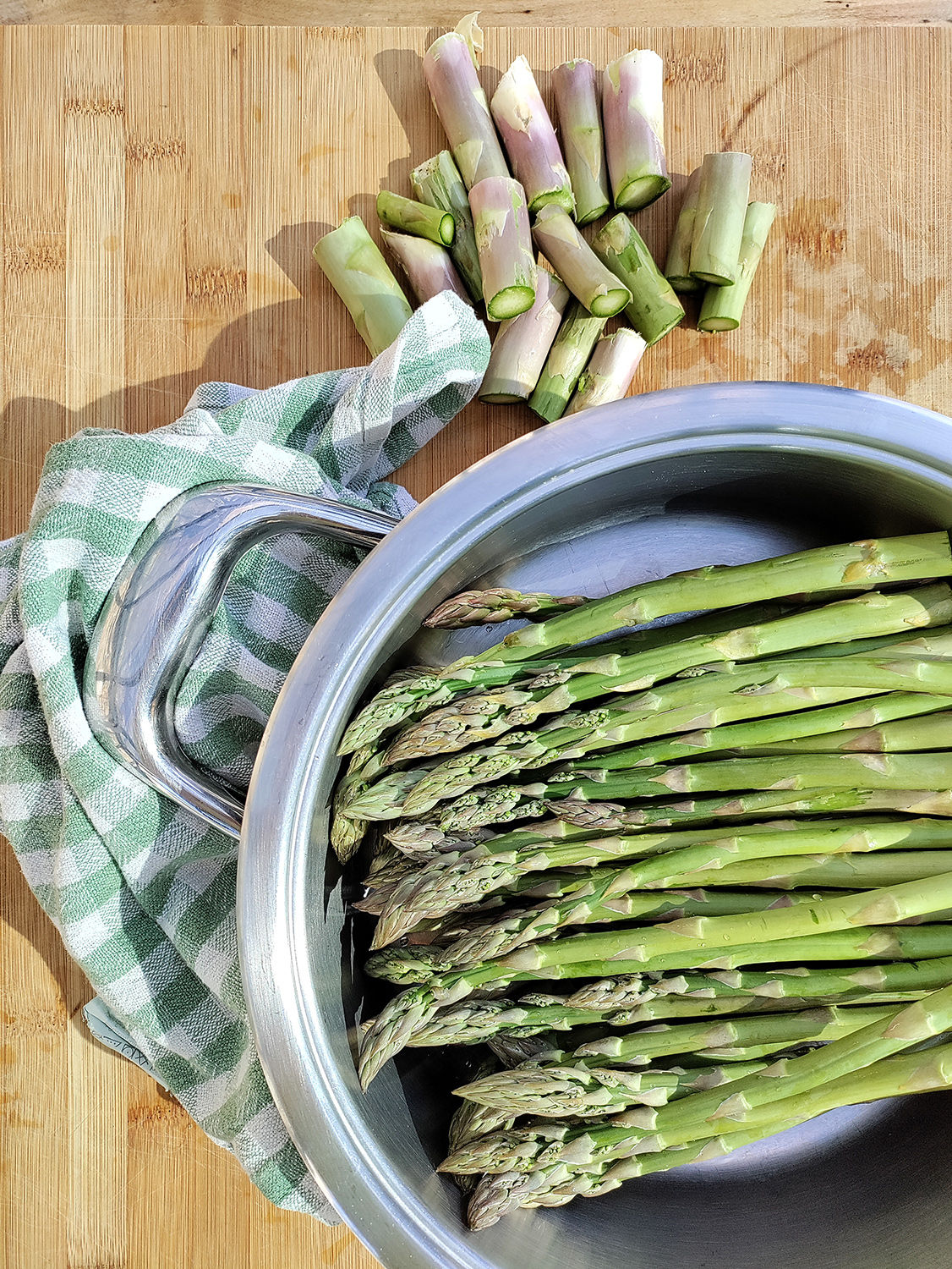 • (11) Laver les asperges, couper les extrémités plus coriaces. Les cuire à la vapeur ou à l’eau.