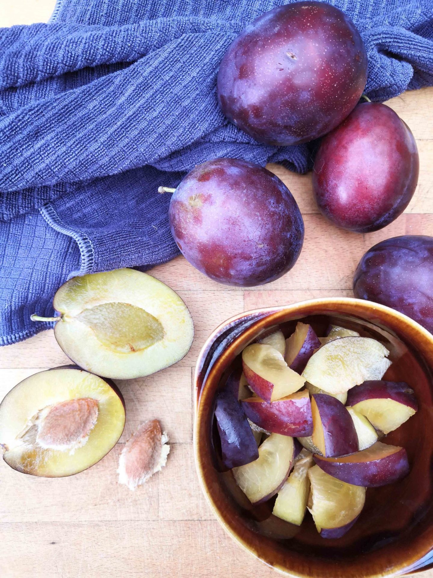 4. Laver et dénoyauter les prunes et les couper en morceaux ou en quartiers.