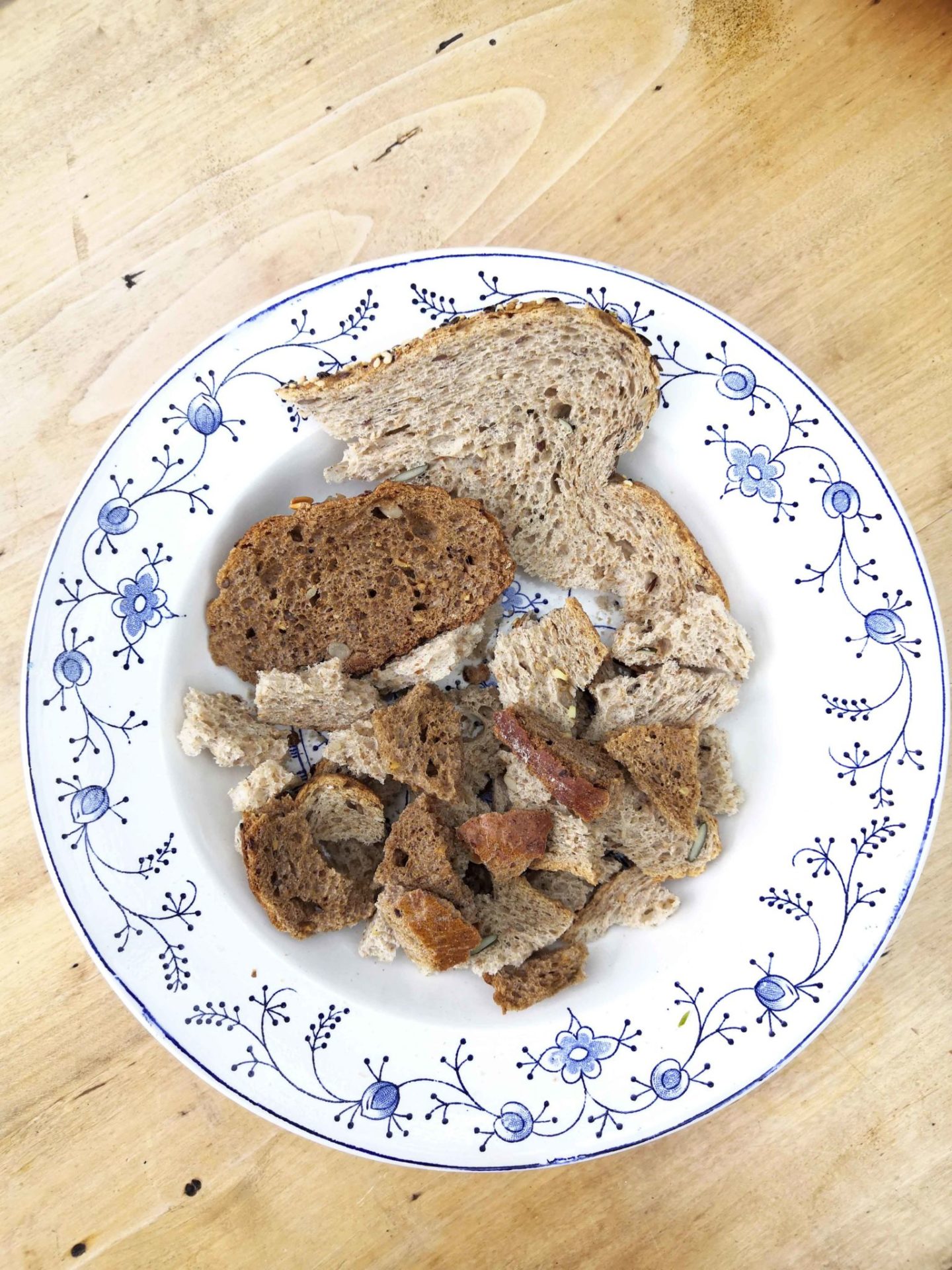 3. Couper le pain en morceaux de 2 à 3 cm.