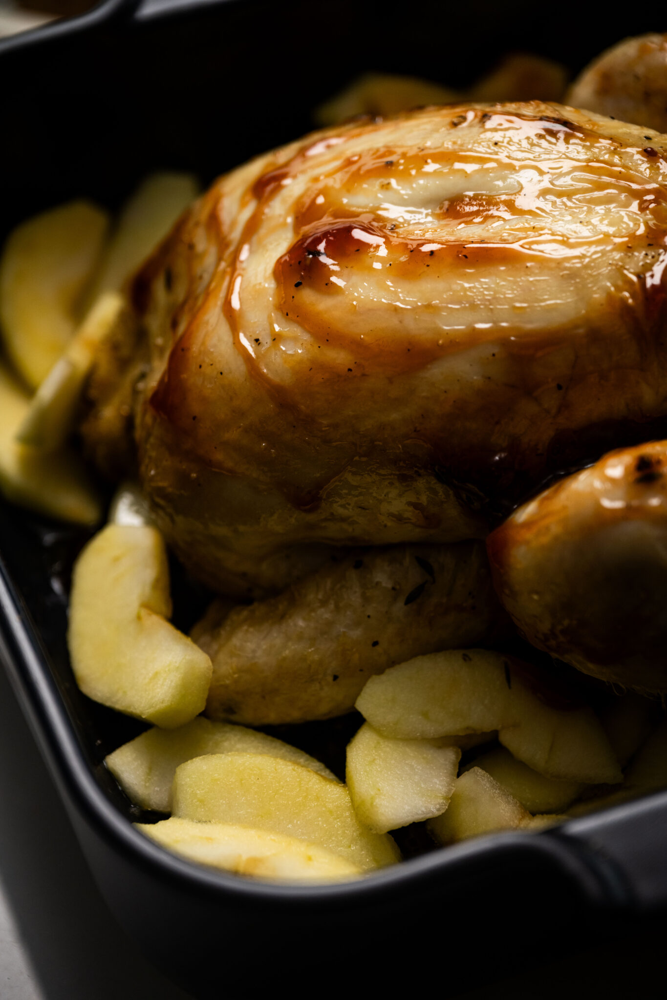 Les pommes vont doucement confire dans le jus de volaille… un pur bonheur