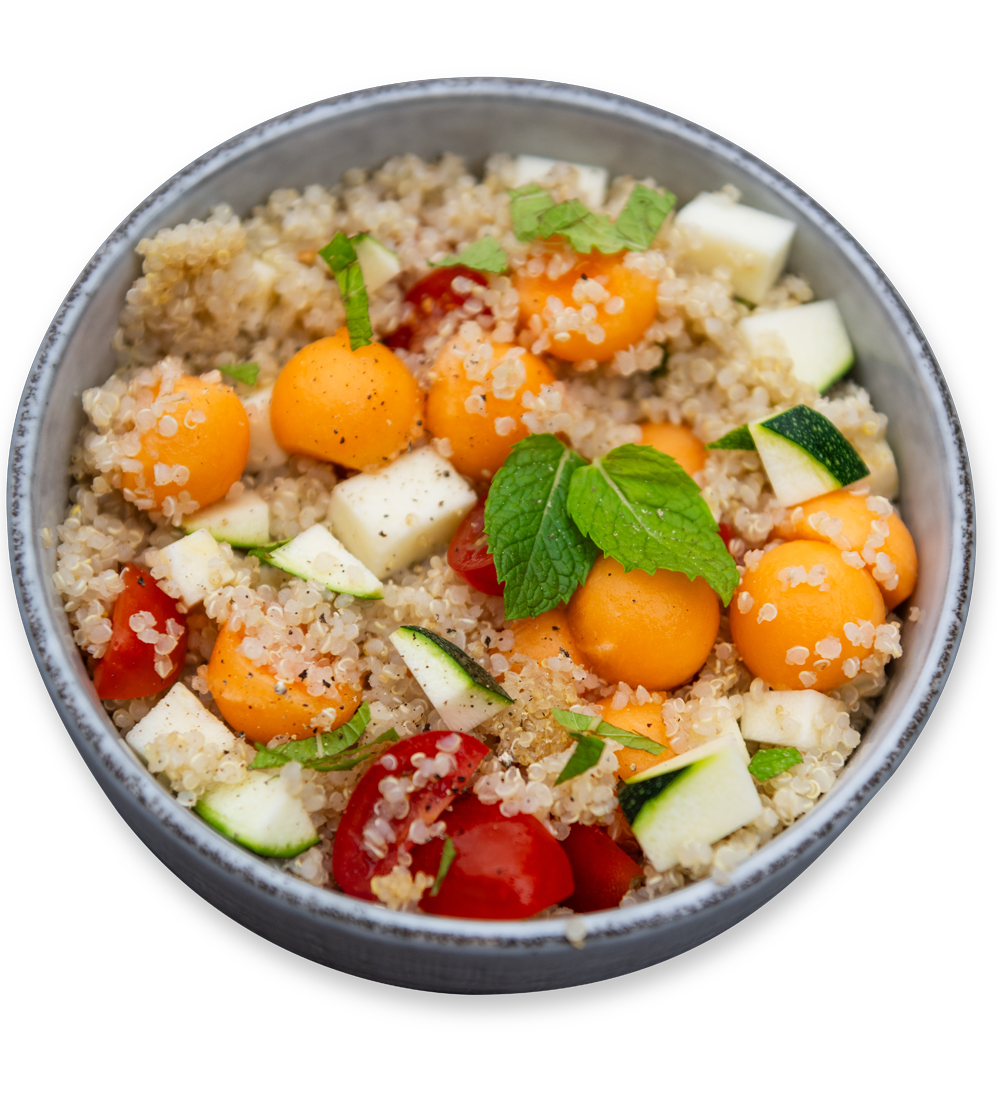 Bienvenue dans cette recette exquise de salade de melon au quinoa. Dans cette combinaison délicate, le melon juteux et sucré rencontre le quinoa léger et nourrissant, permettant ainsi une explosion de saveurs et de textures. Cette salade colorée et pleine de vitalité est une véritable hymne à l'été, mêlant harmonieusement fraîcheur, douceur et nutriments essentiels. Que vous cherchiez une option saine et délicieuse pour un accompagnement ou une entrée originale, cette salade fraiche et nourrissante de melon au quinoa sera votre alliée pour égayer vos repas estivaux.