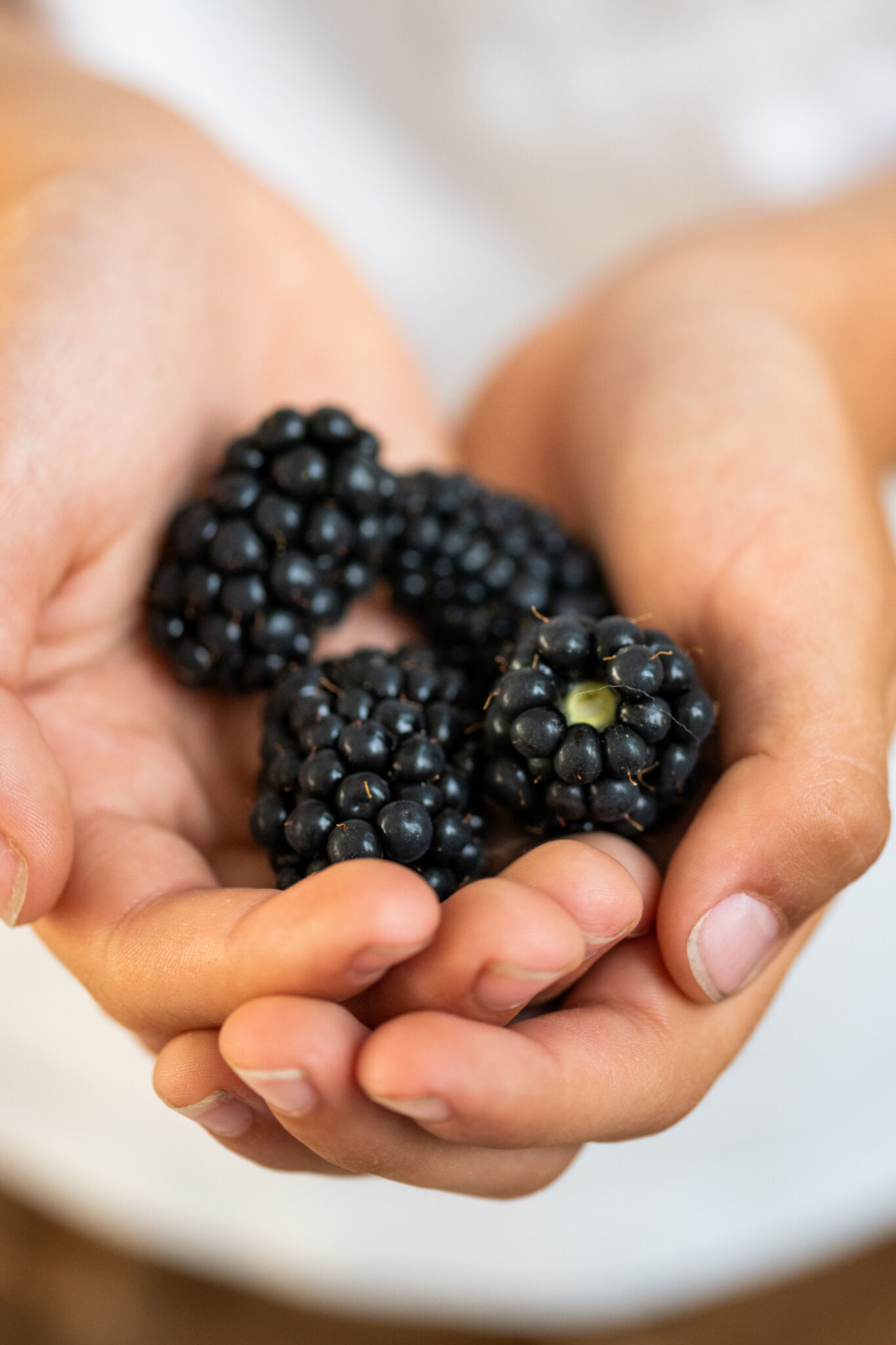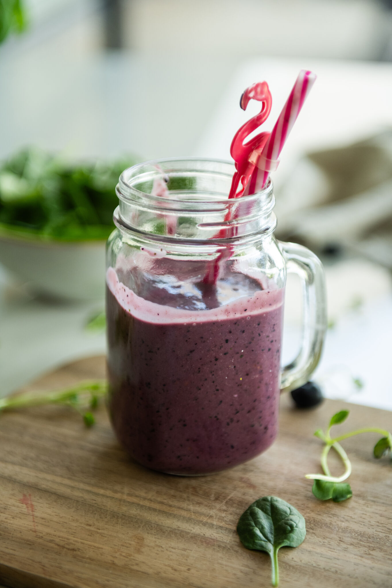 Myrtilles, mûres et même une pointe d'épinards. Et c'est prêt !