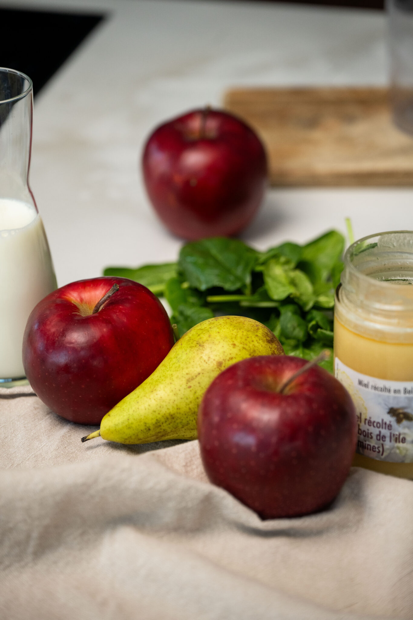 ✨ Pourquoi on l’adore ? Parce qu’il met en valeur les produits d’ici : des épinards frais, une pomme croquante, un peu de poire… et hop, en 3 minutes c’est prêt ! Un mix qui fait du bien au corps, mais aussi aux producteurs locaux. 🙌