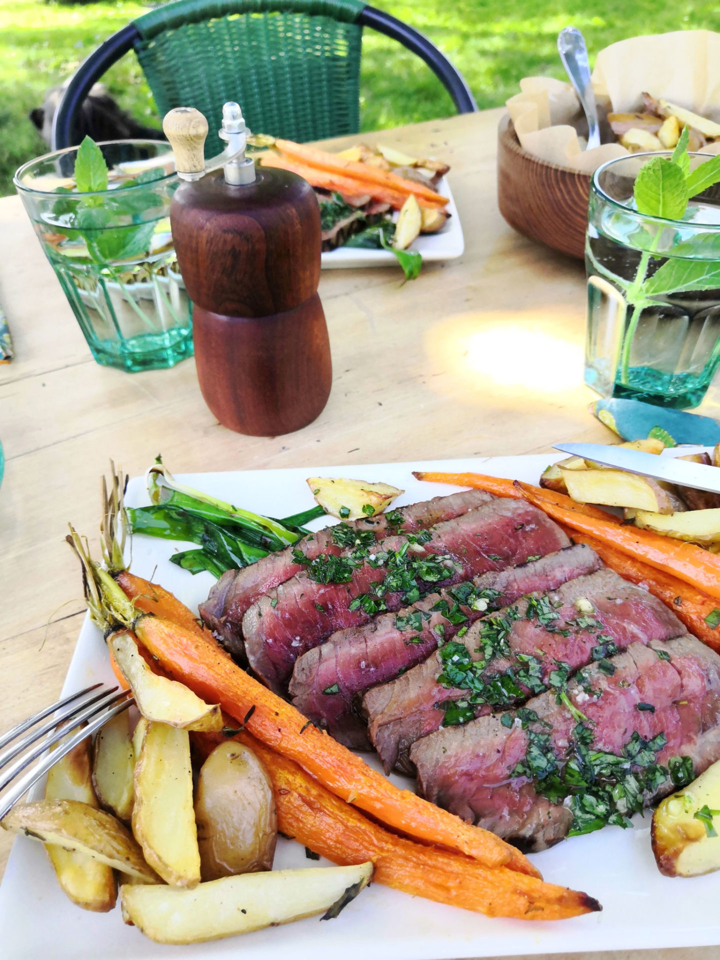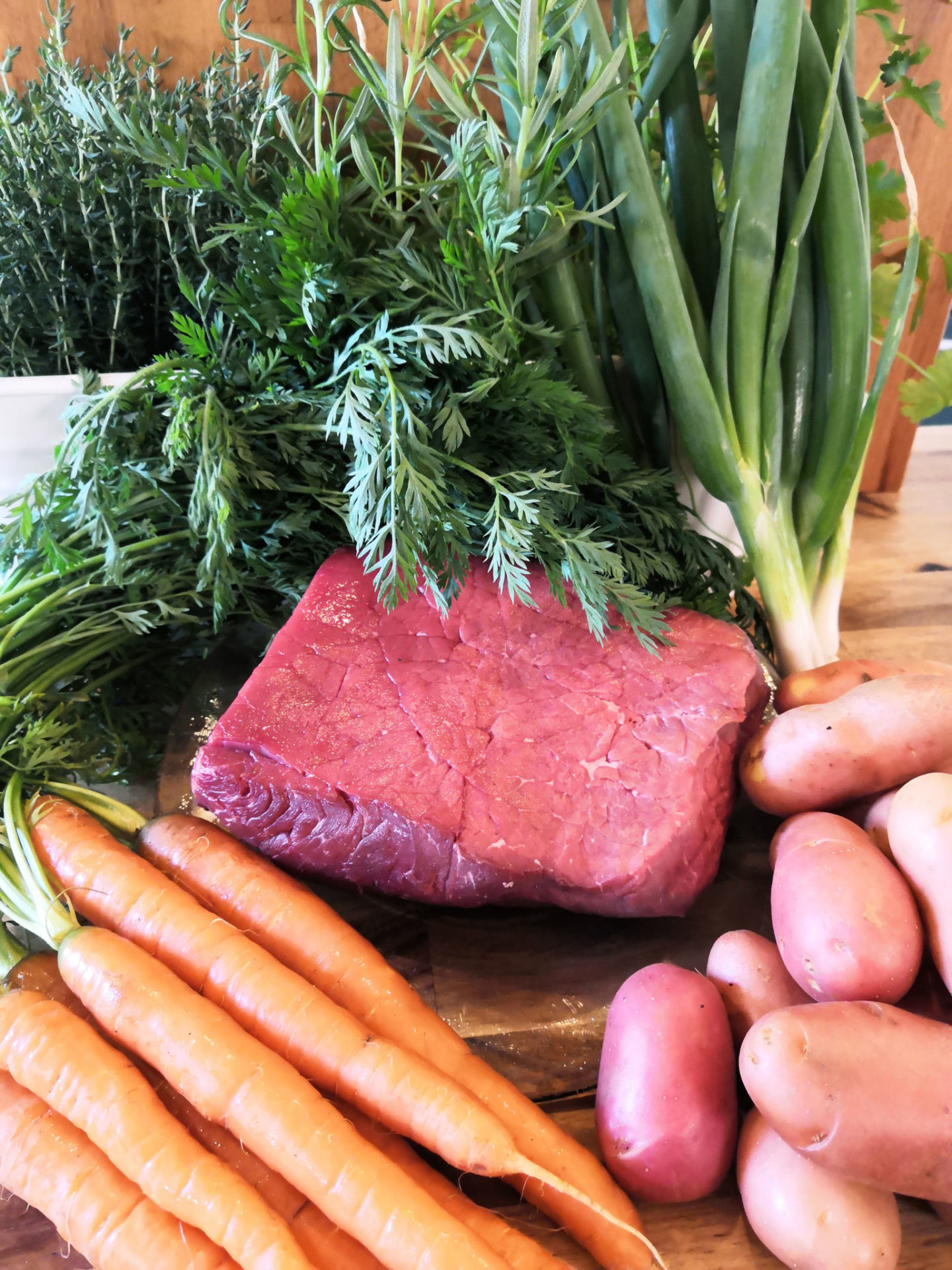 Pour cette préparation, notre boucher nous a servi un morceau d’aloyau. Plus précisément « le chapeau du curé » issu d’une vache de la race Blanc Bleu Belge qui a entre 6 et 9 ans.