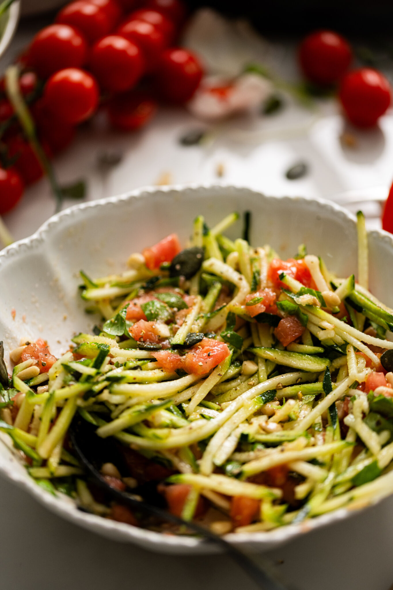 Une tomate farcie, ce n'est pas forcément avec du haché ! L'intérêt ici se trouve dans l'effiloché de bœuf que vous allez préparer, mélangé avec la courgette râpée et la pulpe de tomate. L'ensemble avec le mélange de graines et le basilic... un délice !