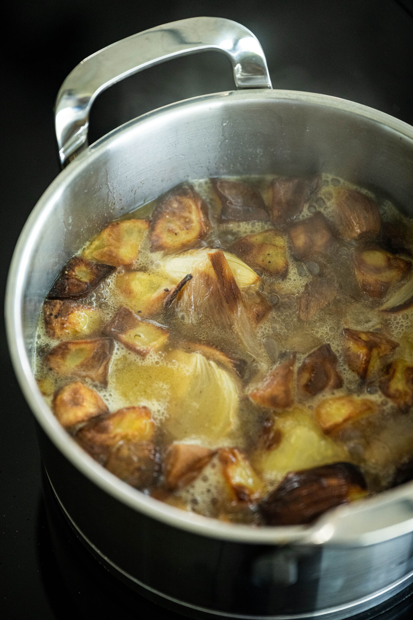 - 2 petites pommes de terre, pelées et coupées en quartiers