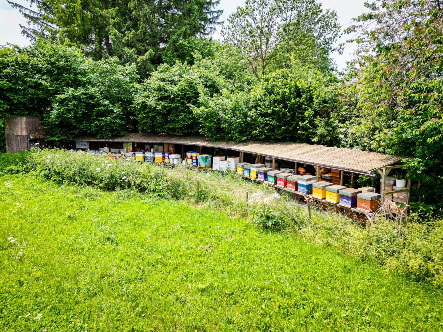 On les entend avant de les voir. Le portail s’ouvre doucement. Plusieurs ruches de couleurs émergent, alignées en bordure de champ, à quelques minutes de Verviers.