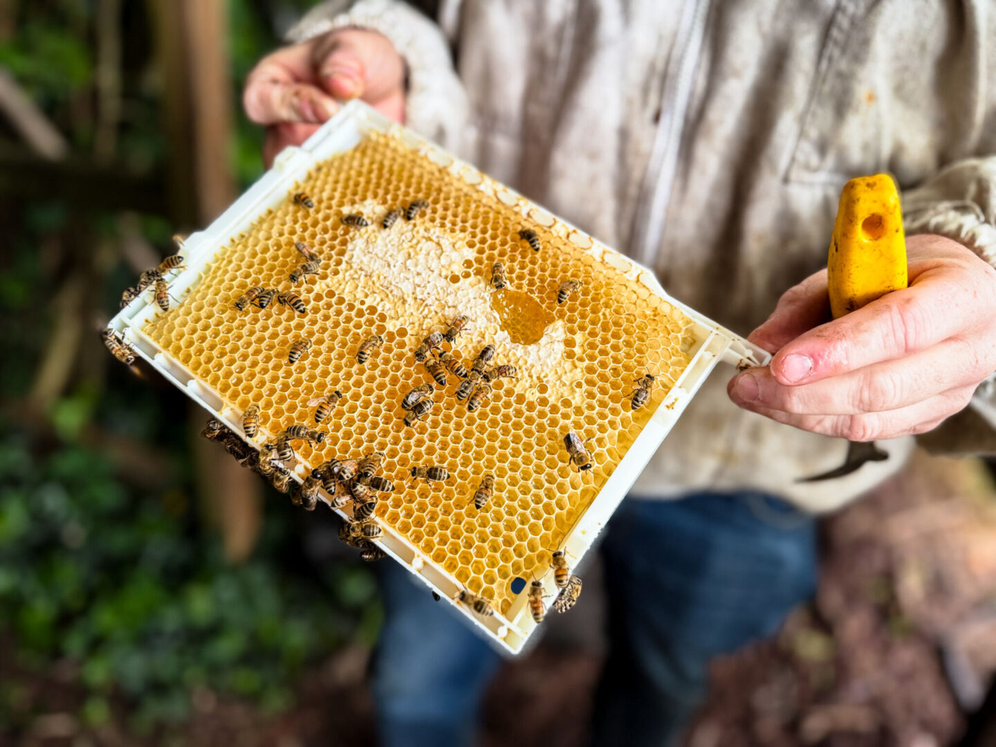 Le mois d’août touche à sa fin. « Cette année, on a eu un très beau printemps ! En général, la saison commence mi-avril, dès que le pissenlit fleurit. Et elle se termine courant juillet. » Les greniers, ces caisses que l’on place au-dessus des ruches pour récolter le surplus, ont déjà été retirés. « Maintenant, on les soigne pour l’hiver. » Car l’été touche doucement à sa fin, qu’on le veuille ou non. « À partir du 21 juin, les journées diminuent. Nous, on ne s’en rend pas bien compte. Mais elles, les abeilles, elles le sentent. C’est déjà la fin pour elles. »