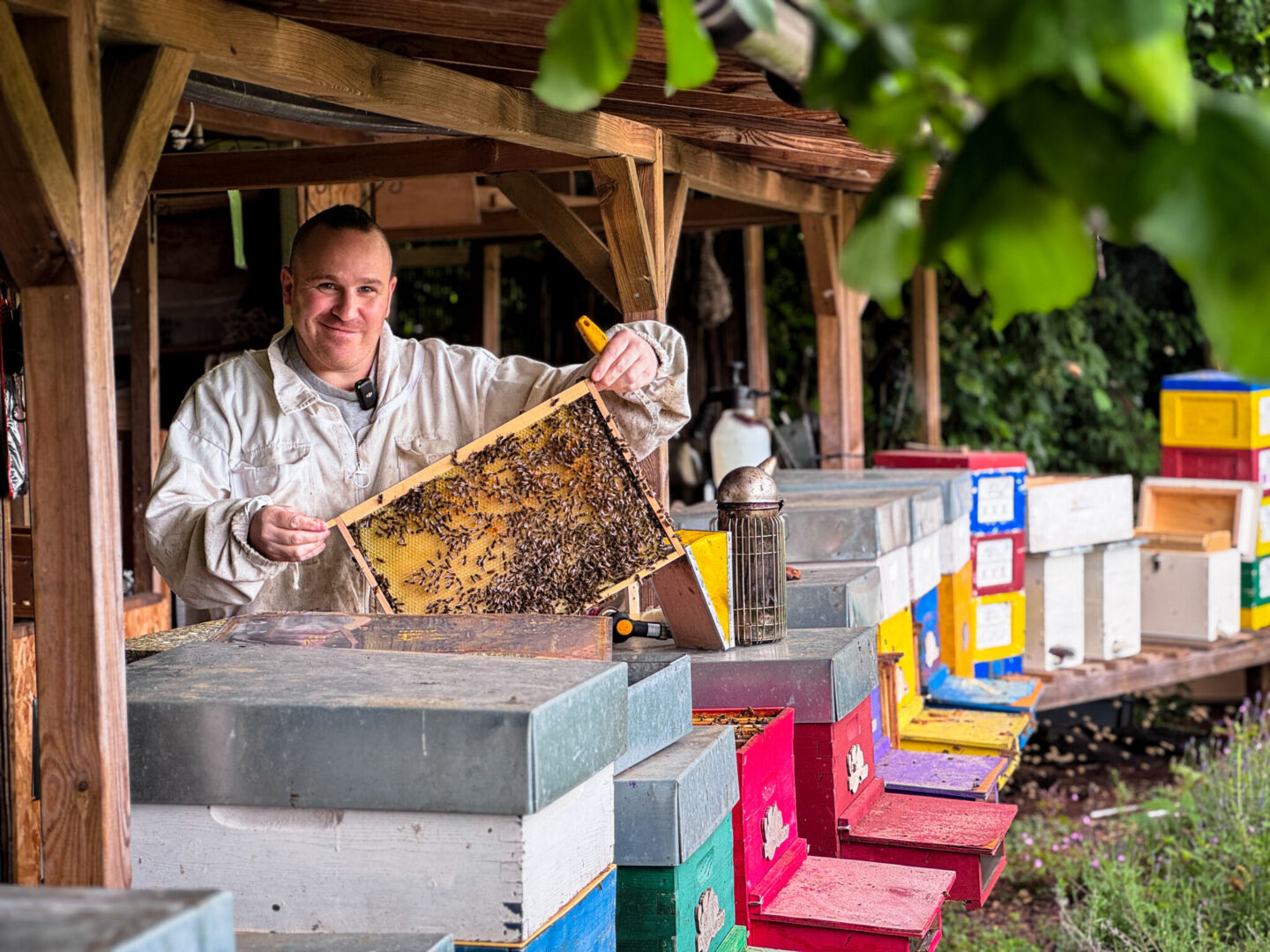 Ici, au Rucher du Chanteloup, Michel Danthinne a trouvé plus qu’un lieu de travail. « C’est mon coin pour m’échapper. Même si ce n’est pas toujours de tout repos », lâche-t-il en riant, en gardant un œil sur une abeille un peu trop insistante. « Celle-là, elle n’est pas sympa. Elle va finir par me piquer… Je dois faire attention, je suis allergique. »