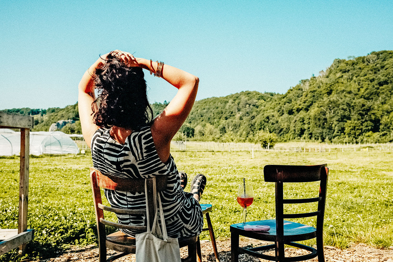 Dégustation et vente des produits de la ferme à la Guinguette (glace, oeufs, fraises, viande). Burger maison sur place…