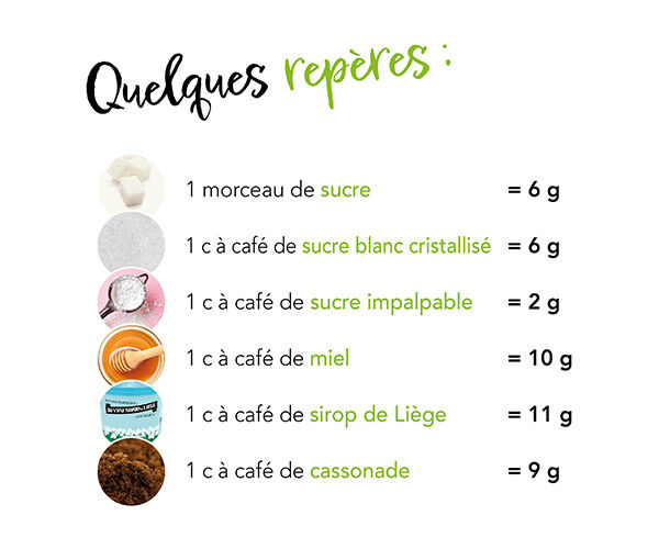 Cependant, l’apport en sucres ajoutés doit, lui, être maintenu sous contrôle. Selon les recommandations du conseil supérieur de la santé (1), les sucres ajoutés ne devraient pas dépasser 10 % de l’apport énergétique total. Cela représente :