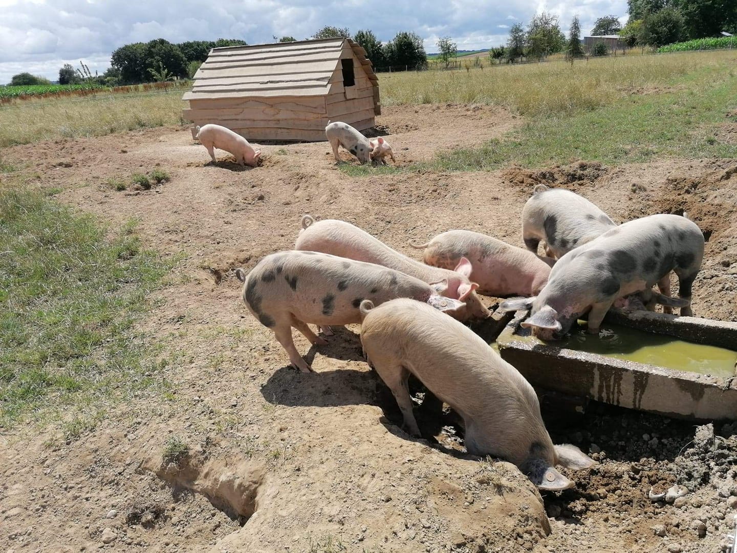 J’ai également souhaité m’enraciner dans le terroir agricole existant en collaborant étroitement avec des agriculteurs voisins qui cultivent avec soin les aliments pour mes cochons. Tous les colis sont vendus en direct sur commande afin de vous garantir la qualité de la viande. C’est le chemin du circuit court qui vous garantit le goût, la fraicheur et la qualité d’un produit issu d’un petit élevage fermier.