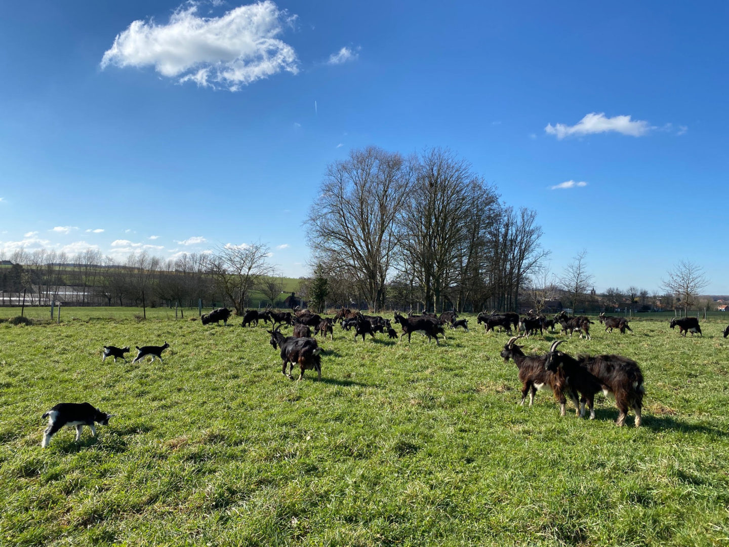 Ferme en agriculture biologique près de Tournai : légumes diversifiés de plein champs, élevage de chèvres avec transformation du lait en fromages et yaourts, grandes cultures.