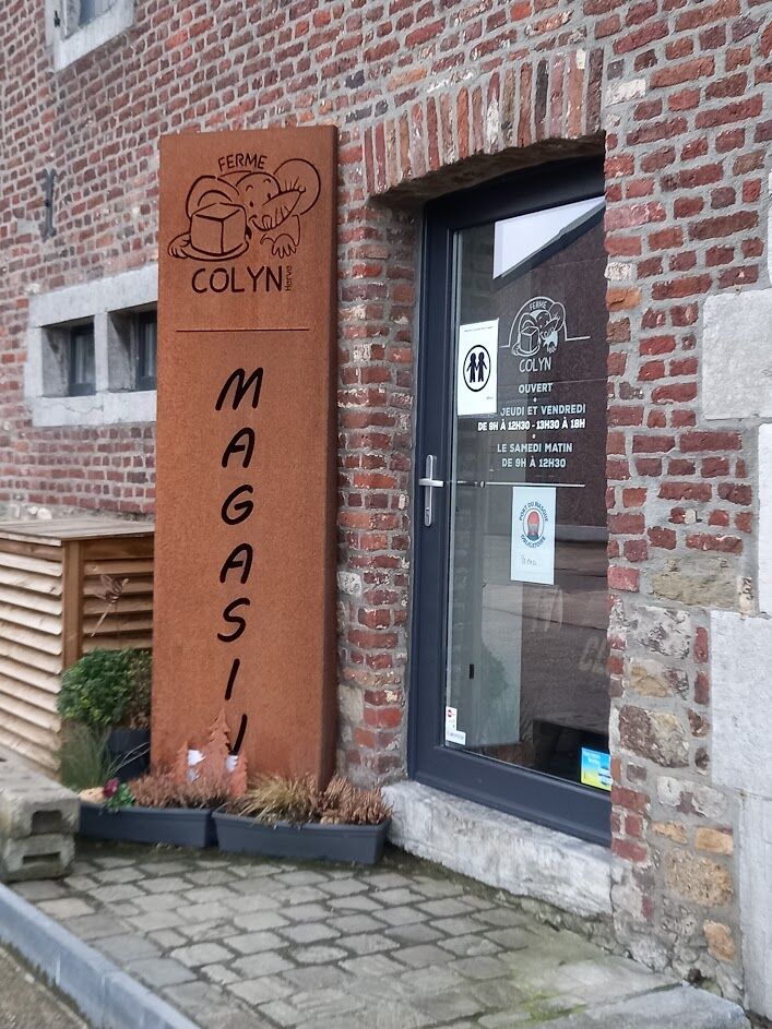 A la ferme Colyn, nous produisons et transformons directement à la ferme depuis 3 générations. Dans notre exploitation laitière nous fabriquons du beurre au lait cru, de la maquée, des yaourts et nous affinons nos fromages de Herve. Le cheptel de la ferme est composé de 120 vaches qui pâturent la majorité de l’année et dont le lait est valorisé dans la filière courte « Marguerite Happy Cow ». Nous disposons également d’un petit magasin à la ferme où nous vous proposons nos différents produits ainsi que d’autres produits locaux.