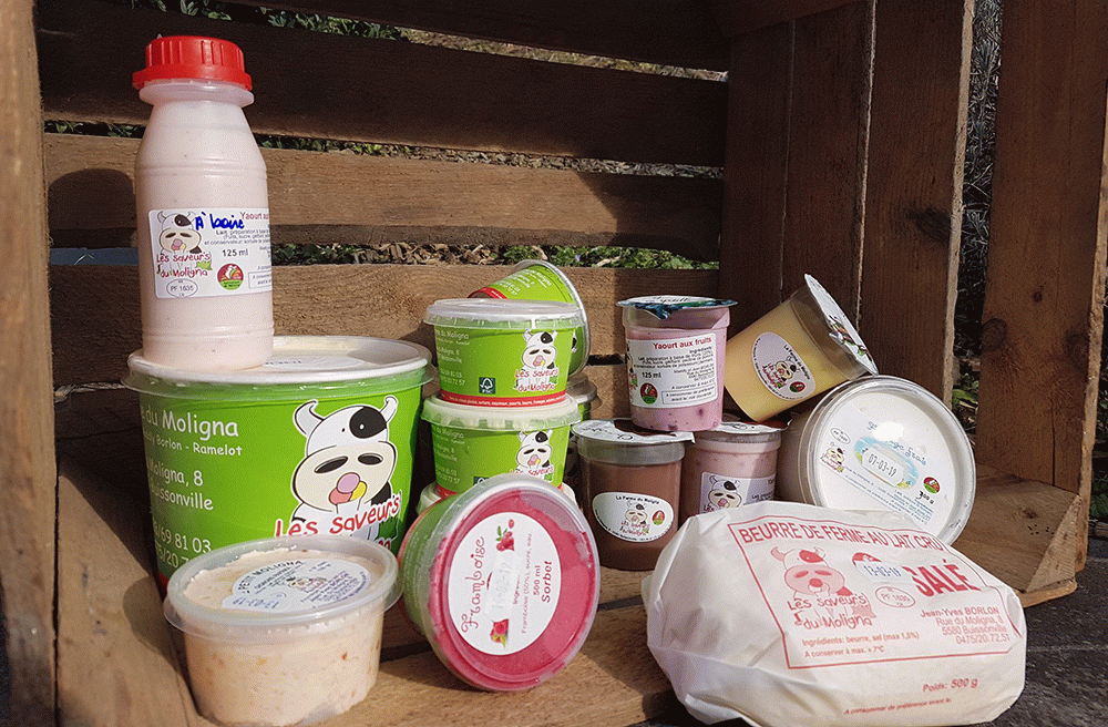 Transformation de notre lait en glace, beurre, yaourts, mascarpone et divers fromages frais. Vente de ces différents produits dans notre magasin ainsi que d’autres produits comme : du lait, des fromages d’autres producteurs, de la crème, des pommes de terre, de la pâte à tartiner, confitures, une multitude de chocolats…