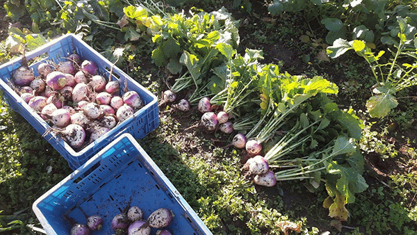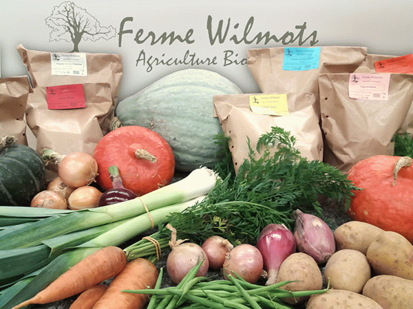 Nous proposons : pommes de terre, oignons et carottes principalement. Ainsi que quelques légumes de saison (épinards, panais, courges, courgettes, bettes…). Depuis peu, nous avons des farines issues de nos propres céréales : froment, épeautre, petit épeautre, seigle et sarrasin.