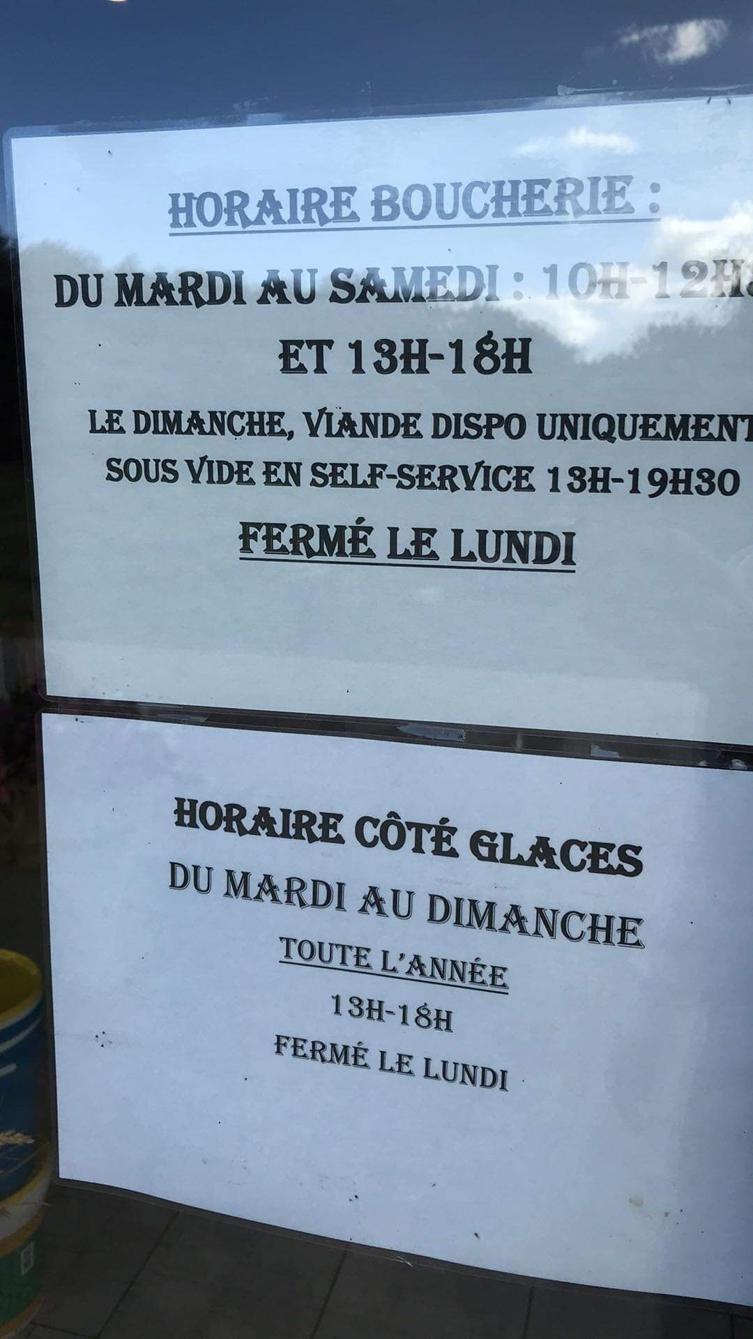 Boucherie à et de la ferme. Fabrication de charcuteries et de plats préparés, salaisons. Vente de viandes fraîches. Porc, boeuf de la race Rouge des Prés, poulets et agneaux. Tous élevés chez nous !