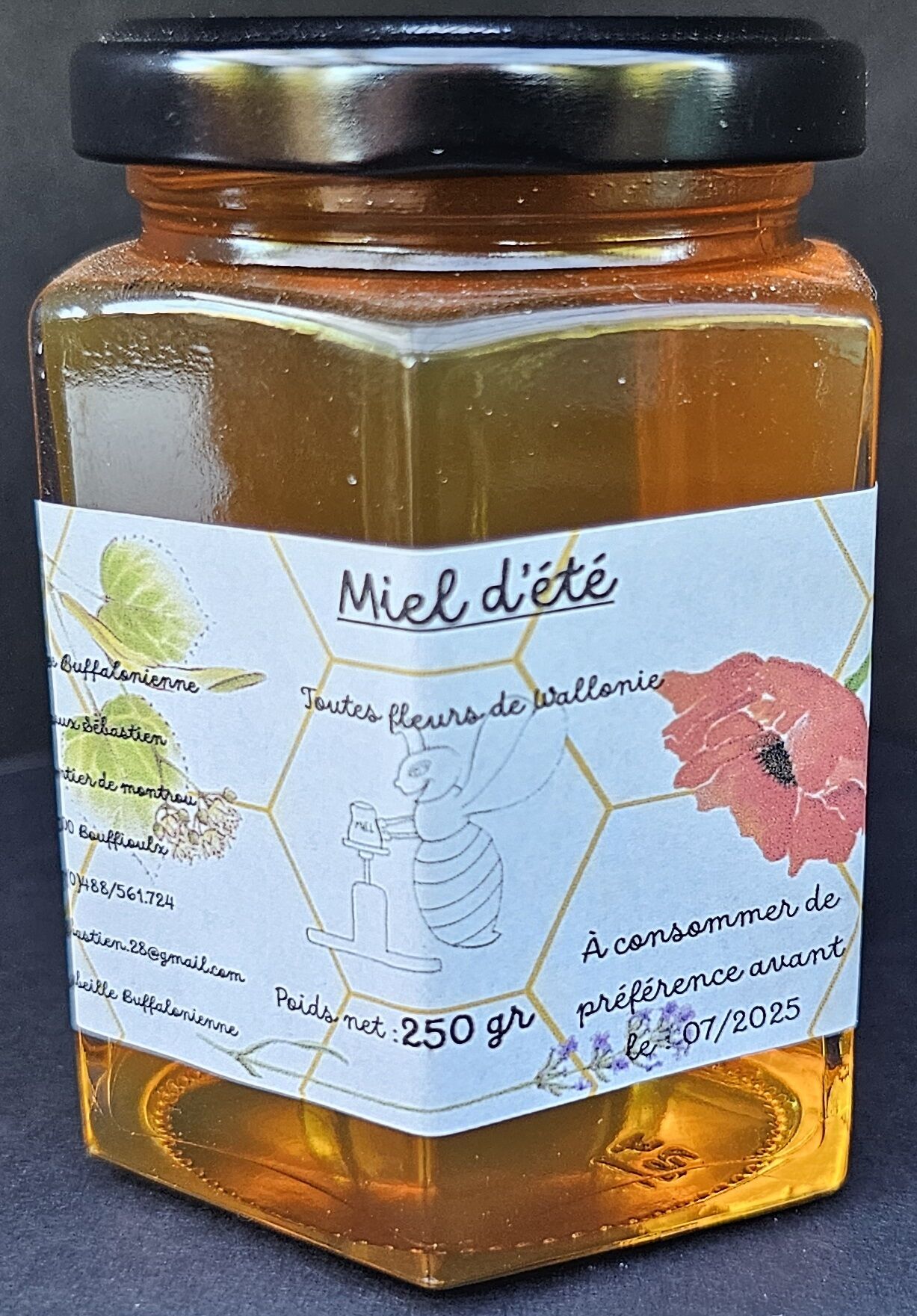 Apiculteur, je propose du bon miel (de printemps ou d’été) toutes fleurs, ainsi que des produits dérivés : du pain d’épices (nature, au sucre perlé, à la figue, à l’orange confite), des sucettes (miel nature, miel citron, miel citron zeste de citron), de la guimauve (nature, fraise, coquelicot, violette, menthe, tarte citron meringué), des pâtes à tartiner (chocomiel, pâte d’écureuil), du miel avec avec des huiles essentielles (Respimiel, Toussomiel, Defimiel), un mélange de miel avec du pollen (pollomiel), où avec de la propolis (propomiel), des biscuits au miel (cœurs de miel), des bougies à la cire d’abeilles, de la propolis…
