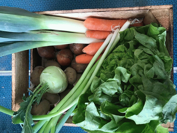 Production et vente de légumes de saison sous forme d’abonnement à un panier hebdomadaire.