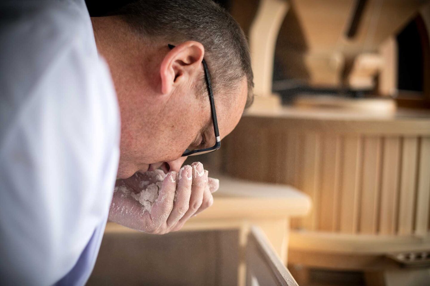 Pour vous offrir un pain authentique et savoureux, nous utilisons exclusivement des matières premières de qualité, d’origine locale. Nous privilégions également le levain à la levure pour rendre nos pains bien plus digestes. Stéphane travaille comme autrefois et consacre tout le temps nécessaire à la panification. Chez nous, le pain se fait en 3 jours : mouture du grain le premier jour, et pétrissage de la pâte, fermentation de minimum 24 heures et cuisson le dernier jour. Quant à Lily, elle vous concocte des gourmandises maison et met un point d’honneur à vous accueillir avec le sourire.