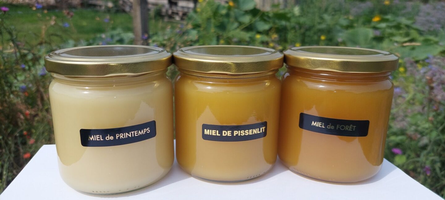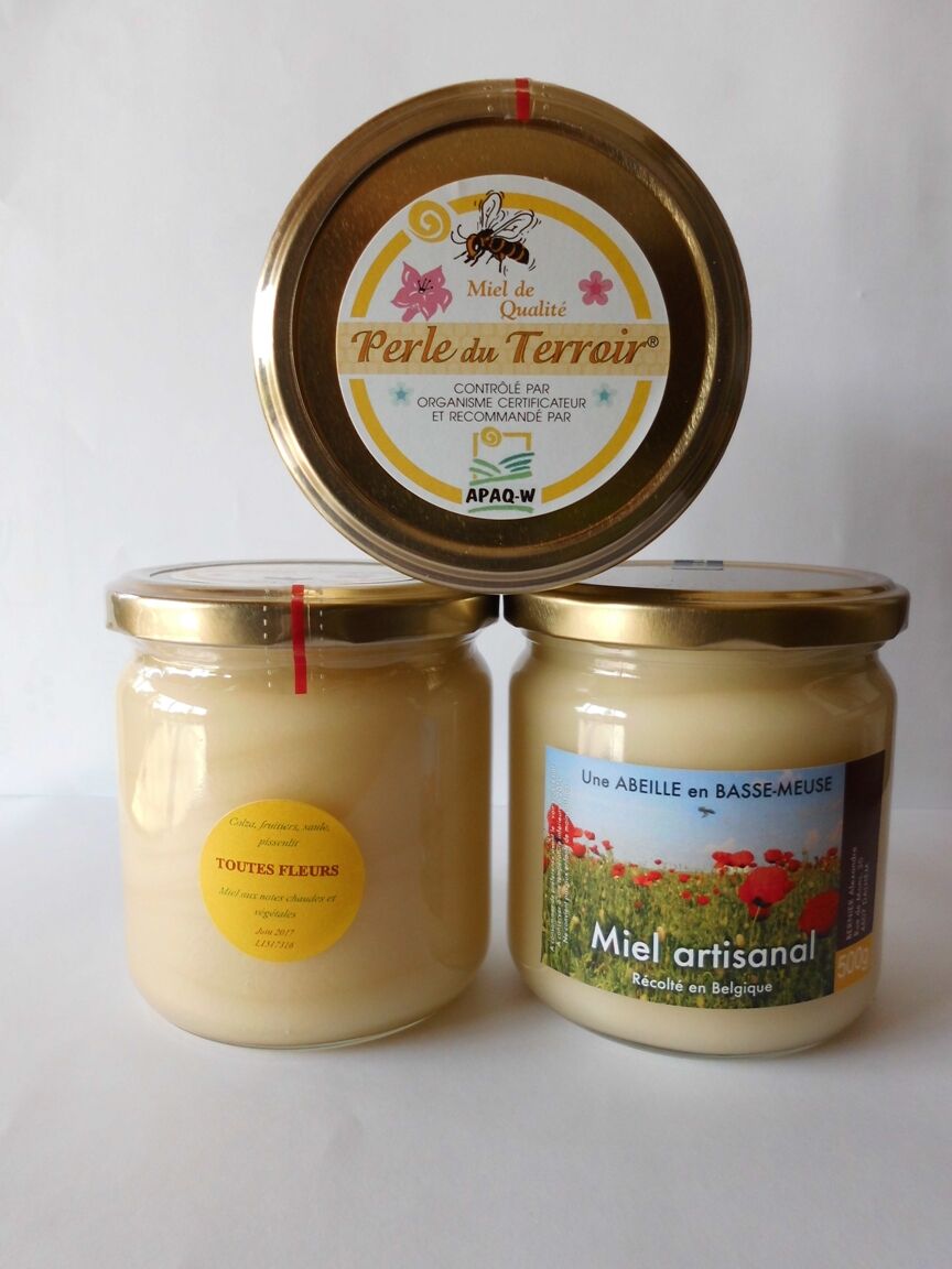 Miels artisanaux et autres produits apicoles issus de nos ruchers implantés en Basse-Meuse depuis 2010. Les emplacements ont été choisis pour la qualité mellifère spécifique. Cette diversité se traduit par des miels monofloraux de cru ou polyfloraux aux couleurs, consistances, saveurs et arômes très distincts. Miels liquide ou tartinable qualité « IPG Miel Wallon » : colza, printemps, pissenlit, robinier faux-acacia, été, tilleul, ronce, miellat/forêt…